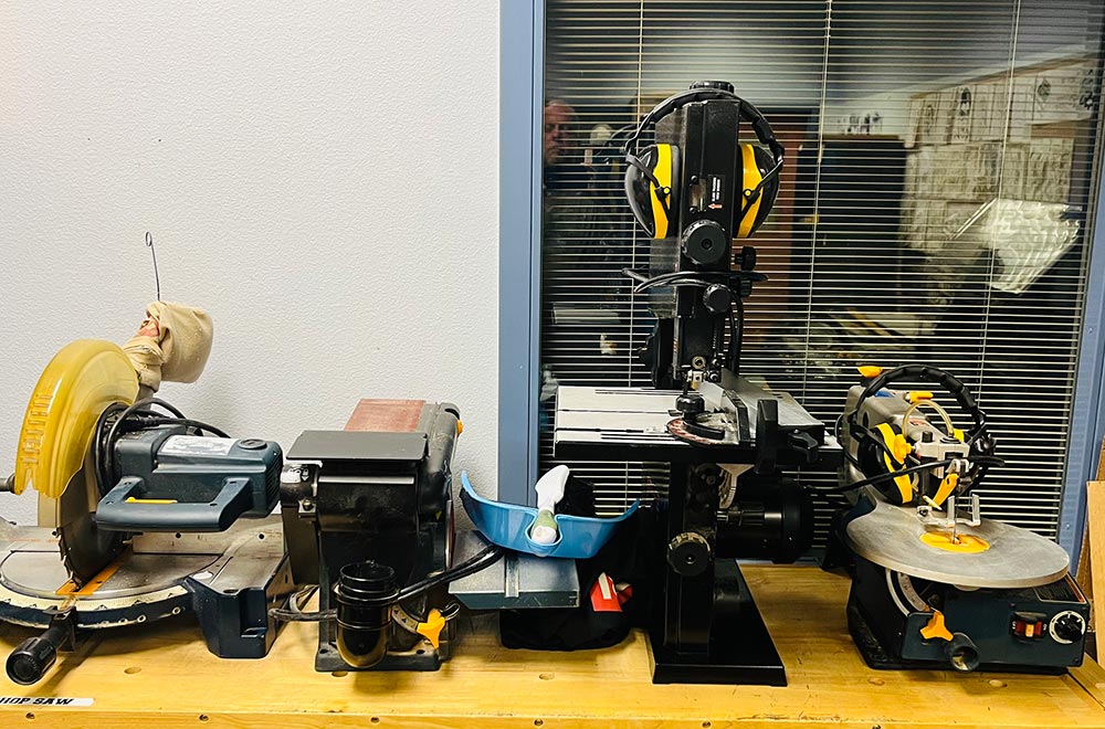 Chop saw, Band saw, Skill Saw, Table saw, Circular saw, Jig saw, Belt Sander, Drill Press, Drills and more